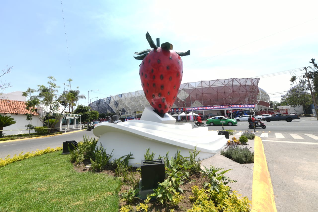 Irapuato suma un nuevo símbolo urbano. La Fresa Monumental ya luce en Jardines de Irapuato. La obra honra historia, cultura y tradición local.