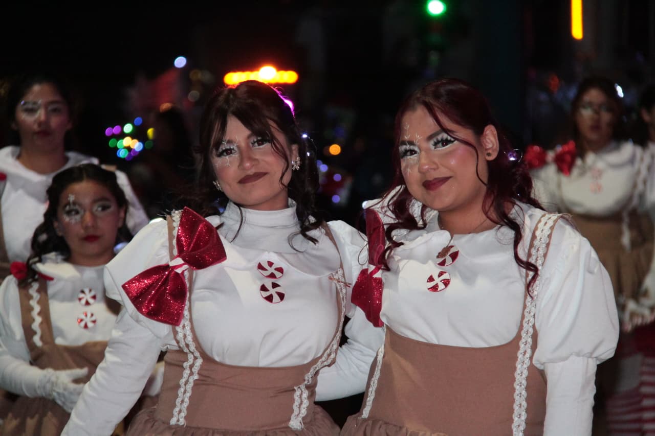 El desfile contó con la participación de más de 28 carros alegóricos iluminados, decorados con motivos navideños. Además, bandas de música locales y grupos de danza acompañaron el recorrido, creando un ambiente festivo que contagió a todas y todos.