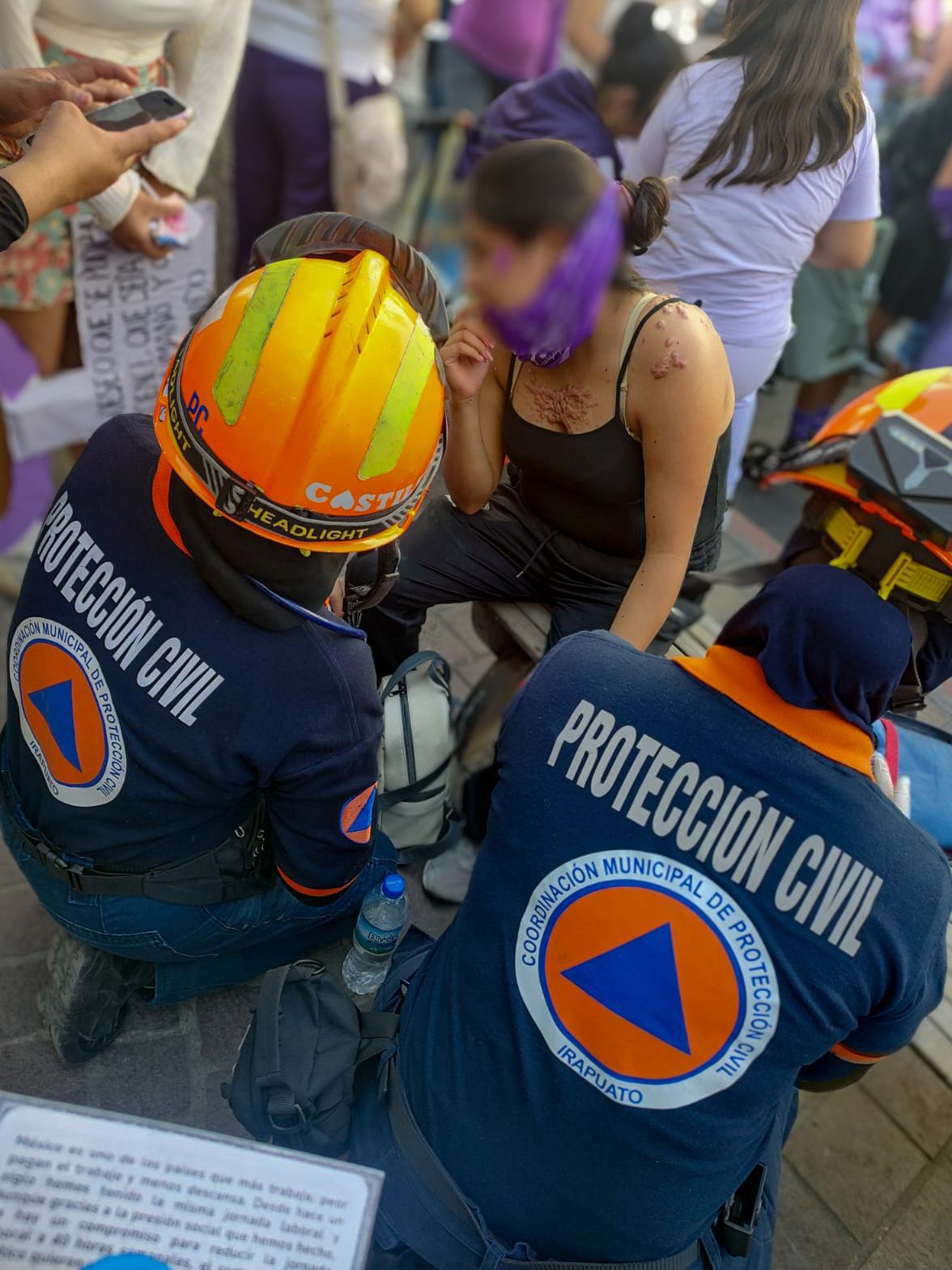 Durante la marcha del Día Internacional de la Mujer en Irapuato, diversas dependencias municipales participaron en el operativo de acompañamiento.