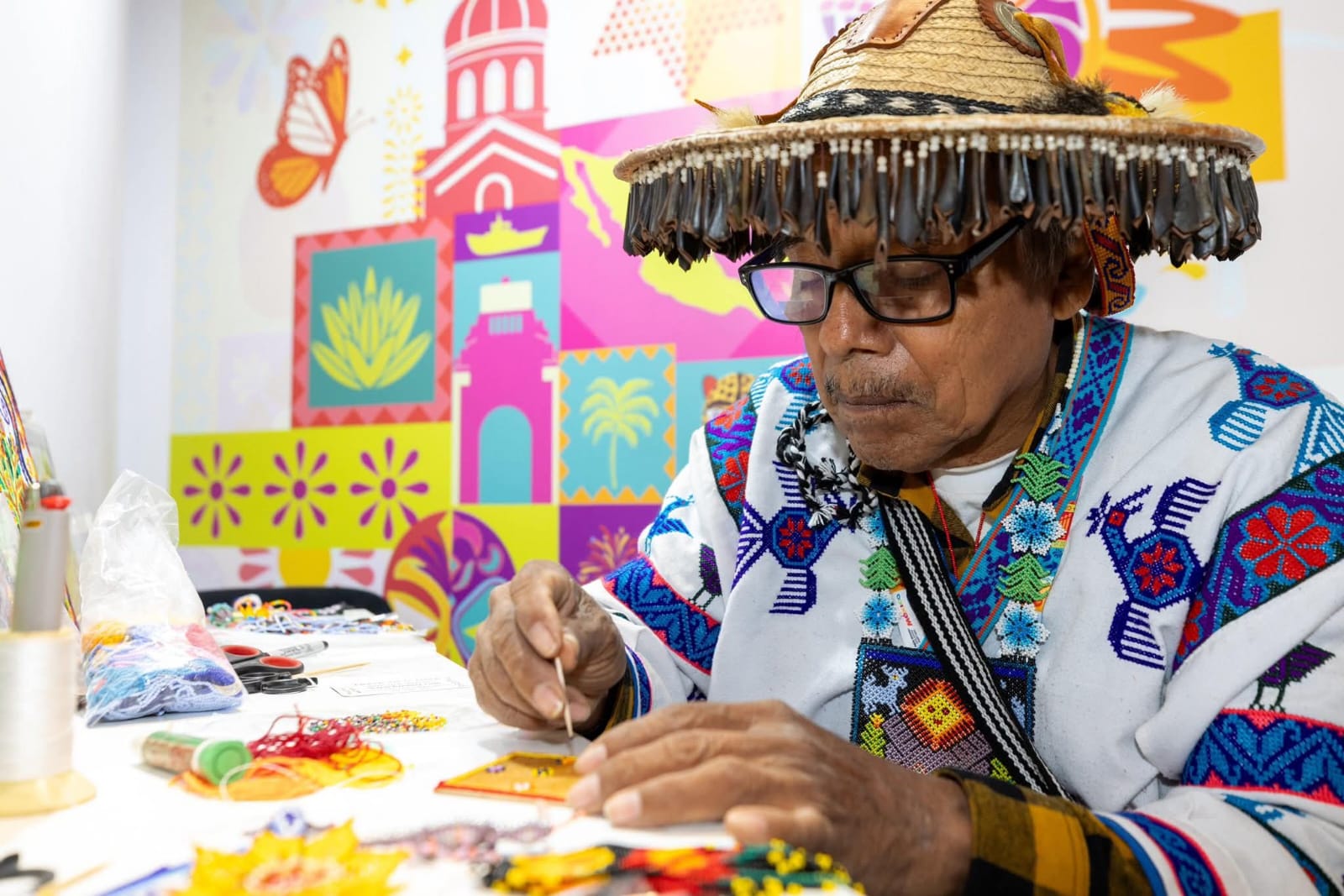 El arte wixárika fue protagonista cultural, destacando talleres de chaquira e hilo ofrecidos por artesanos como Claudia Corona, Gil Díaz y Macario Matías.