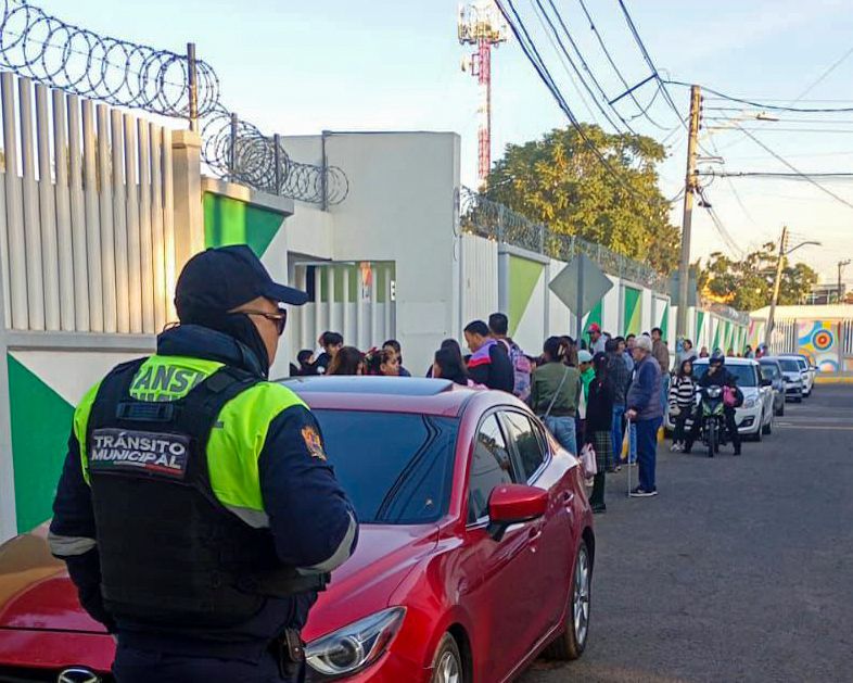 Elementos de Tránsito Municipal se ubican en accesos a planteles. Su objetivo es agilizar la circulación y proteger peatones.